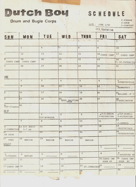In 1979 with the folding of the Northstar Drum Corps The Cadets of Dutch Boy were re-branded to the Dutch Boy Drum and Bugle Corps. This unit was now the primary focus of the Northstar Youth Organization. The Bavarian uniforms were replaced with red tunics, Forest green pants and Black Felt hats. It was designed to recognize the evolving maturity of the Corps membership while maintaining the corps colours of forest green, red and white. Dutch Boy was now on the road towards greater things ahead.